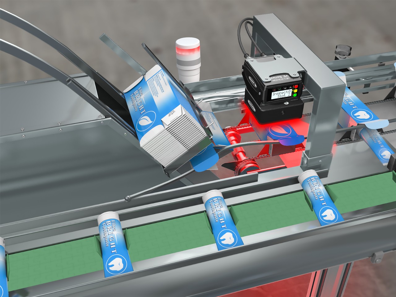 在裝入牙膏管之前,VE系列智能相機會事先檢查每個盒子上的產品標志。當盒子進入檢查區域時,生產線上的