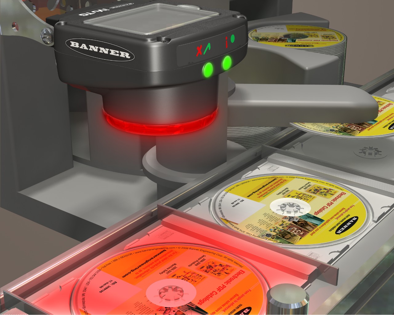 在音樂CD制造中,必須要確保每張音樂CD的方向都正確,然后才能將其裝入包裝盒內。