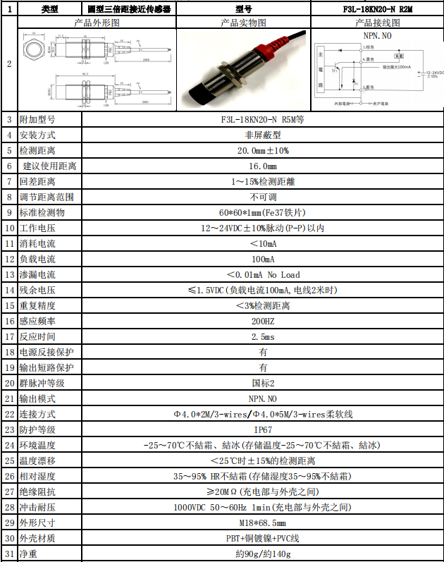 F3L-18KN20-N超長距離檢測是一款高性能的接近開關。